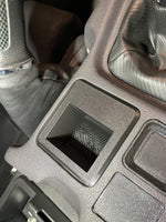 This is a drop in Ashtray replacement. You do not need to cut anything from the center to install this. It is not large enough to hold a drink, just a small storage cubby. Allows you to toss that nasty ashtray.